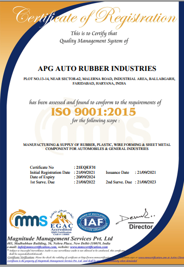 APG Auto Rubber Industries an ISO-9001:2015 was established way back in 2012 at Faridabad. APG Auto Rubber is managed by a team of well experienced & energetic professionals under the leadership of Mr. Amit Goyal & Mr. Shubham Agrawal. The company was started with the vision of manufacturing Rubber, PVC, Plastic & Metal Components of fine & consistent quality. Over the years, we have accumulated a wealth of experience and expertise that has earned us to became a potential supplier of the larger OEMs of automobile & general industries.